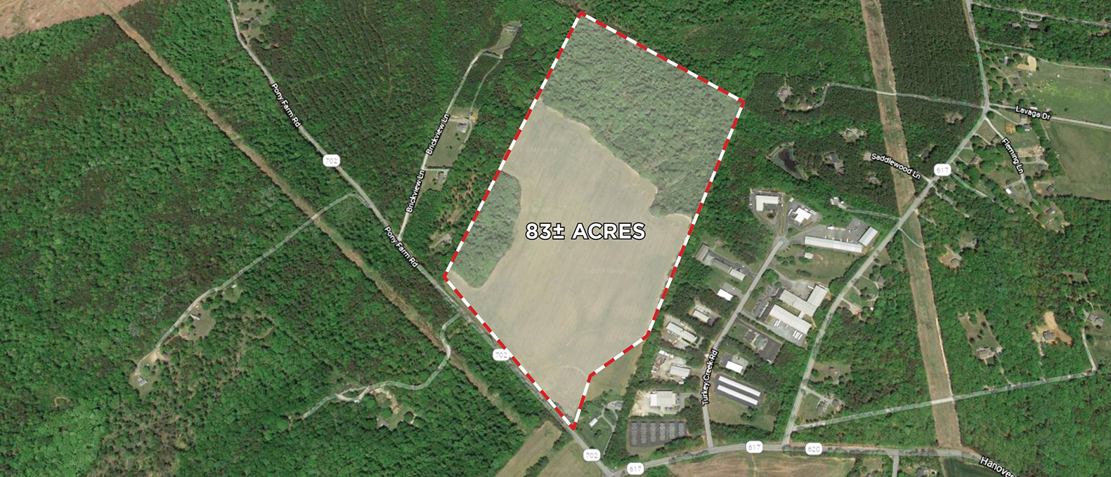 - 900’± of frontage on Pony Farm Road